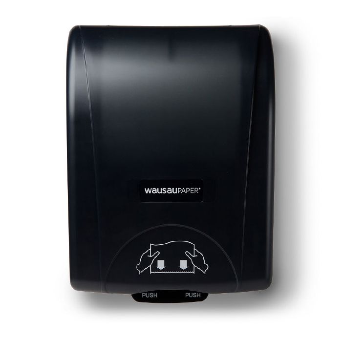 Wausau paper gidds2 bwp89500 lever dispenser roll towel controlled black translucent brand.